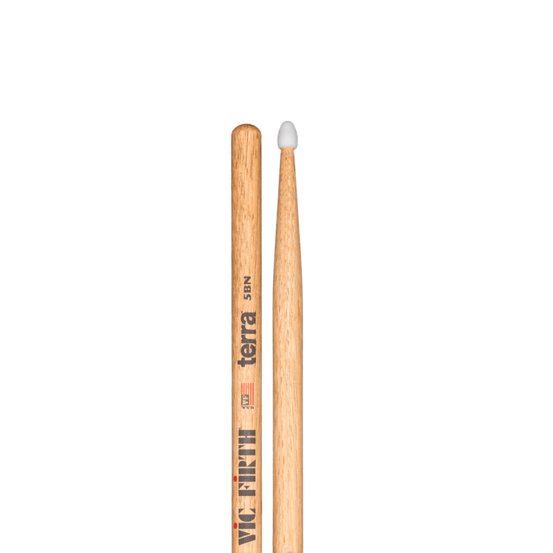 Fabricada em Hickory Premium da cidade de Newport/ME USA, a série Terra é uma homemagem aos bateristas de todo o mundo que confiam nos produtos Vic Firth pra executarem sua arte e musicalidade em sua bateria. Modelo 5B, um pouco mais grosso que o 5A, ideal para sons que demandem um pouco mais de peso. Um dos modelos de baqueta mais populares no mundo. Com ponta de Nylon. A ponta de Nylon traz uma sonoridade mais brilhante e com maior definição nos pratos.