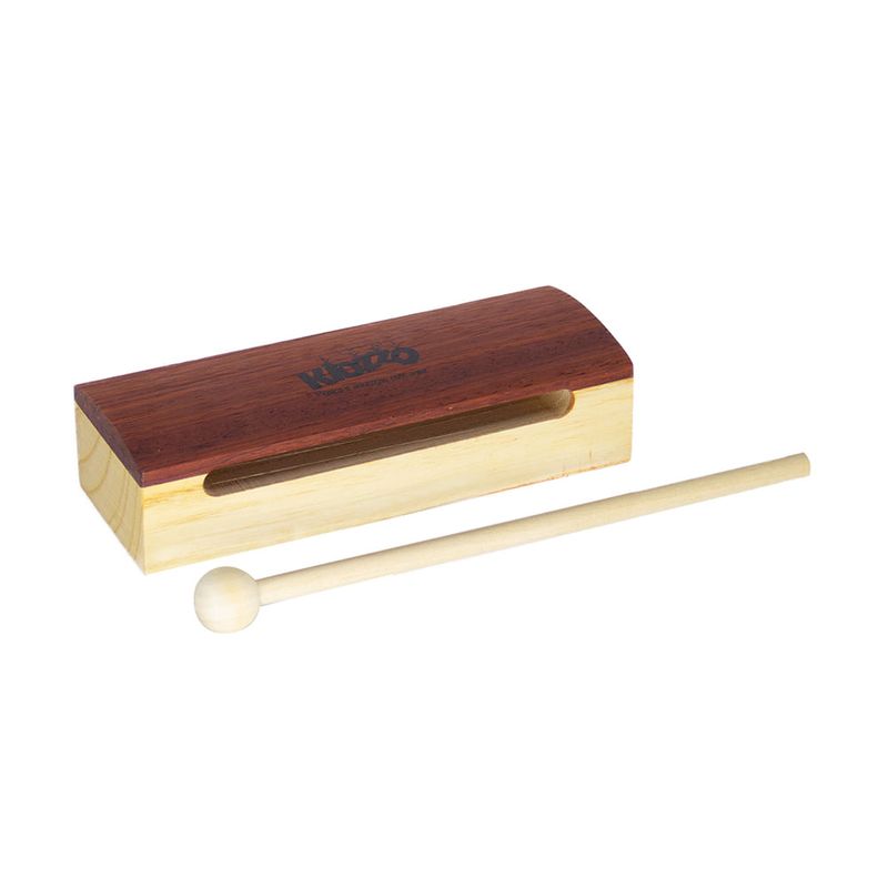 Os Blocos Sonoros Kidzzo são instrumentos ocos em forma de caixa que possuem uma fenda entre o bloco e sua superfície que permite a vibração e o ressonar do som ao serem tocados com as baquetas de pontas sólidas.