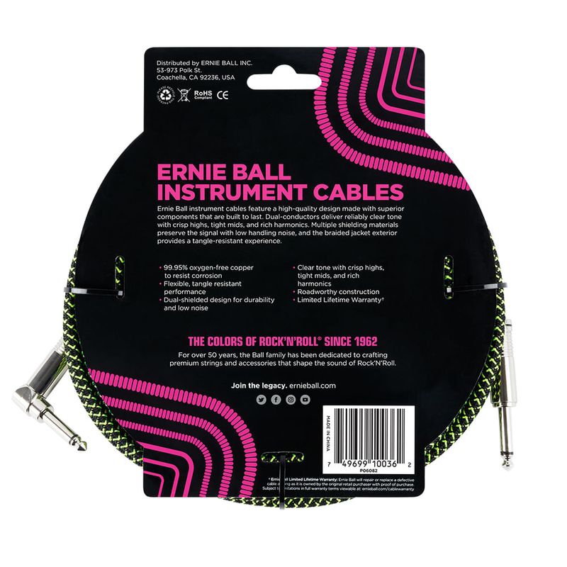 CordasAcessóriosCaboCabo Ernie Ball P10 Reto/L com 5mts Trançado Verde e Peto Blindado P06082