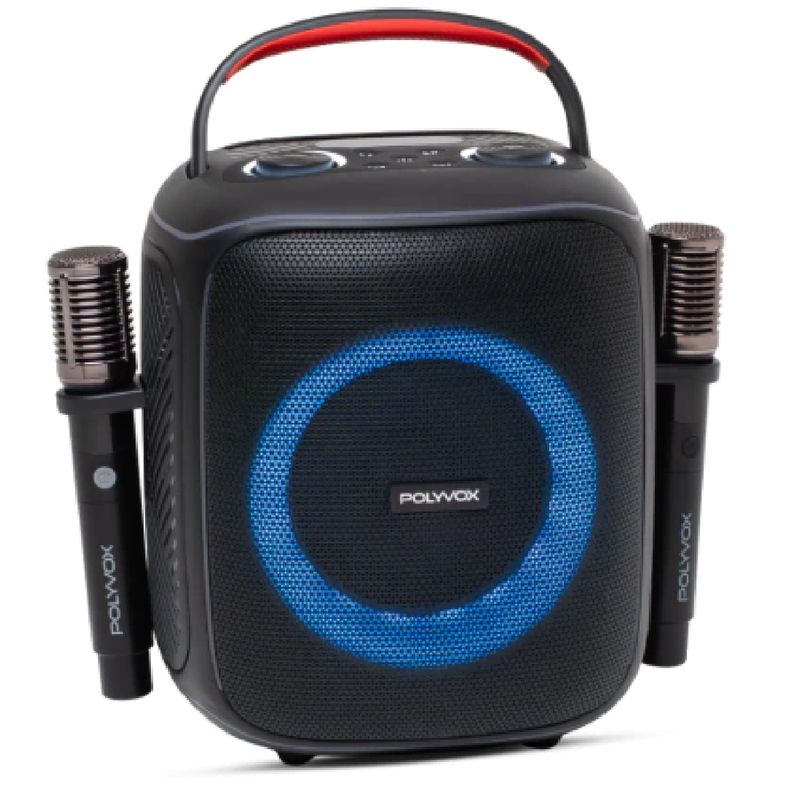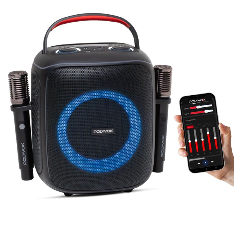 Caixa de Som Amplificada Karaokê Polyvox XK-1 – 160W RMS, Bluetooth 5.3, Show de Luzes Com microfones inclusos