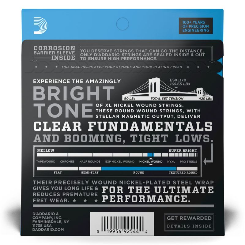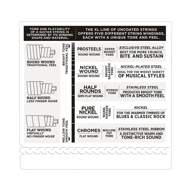 As cordas de contrabaixo XL Nickel Electric Bass são reconhecidas mundialmente como a escolha dos grandes músicos, de todos os estilos. Todas as cordas são precisamente enroladas em nossas exclusivas maquinas controladas por computador, assegurando a cada uma delas perfeita afinação, notas fundamentais limpas e inigualável consistência. O enrolamento com fios de aço banhados a níquel resulta em um timbre brilhante e excelente afinação, proporcionando um timbre universal, para todos os estilos músicais.