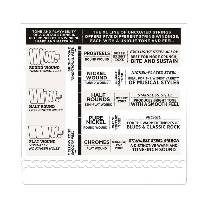 As cordas D'Addario de tensão balanceada são feitas a partir de combinações de diametros precisamente otimizados, resultando em maior controle e conforto ao tocar. Combinadas com o timbre brilhante característico das cordas XL Nickel Wound, cada encordoamento oferece maior controle de dinâmicas e uma pegada mais consistente entre as cordas para otimizar os bends, slaps e o plucking.