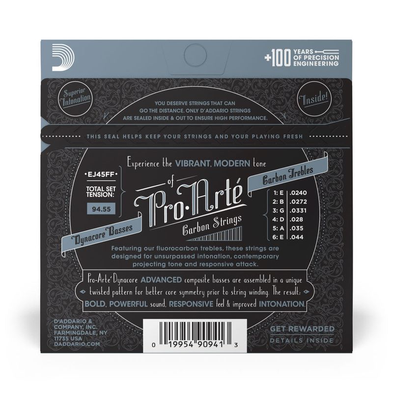Experimente o timbre vibrante, moderno e de alta projeção das cordas D'Addario Pro Arte de Carbono. Seguindo rigorosamente as especificações das cordas primas das Pro Arte nylon, nossas cordas de fluorcarbono oferecem uma entonação incomparável, resposta de ataque e timbre moderno. Assim como os encorpados e poderosos bordões das Dynacore, a Pro Arte de Carbono oferece ao violonista clássico uma combinação ideal entre tensão e timbre.