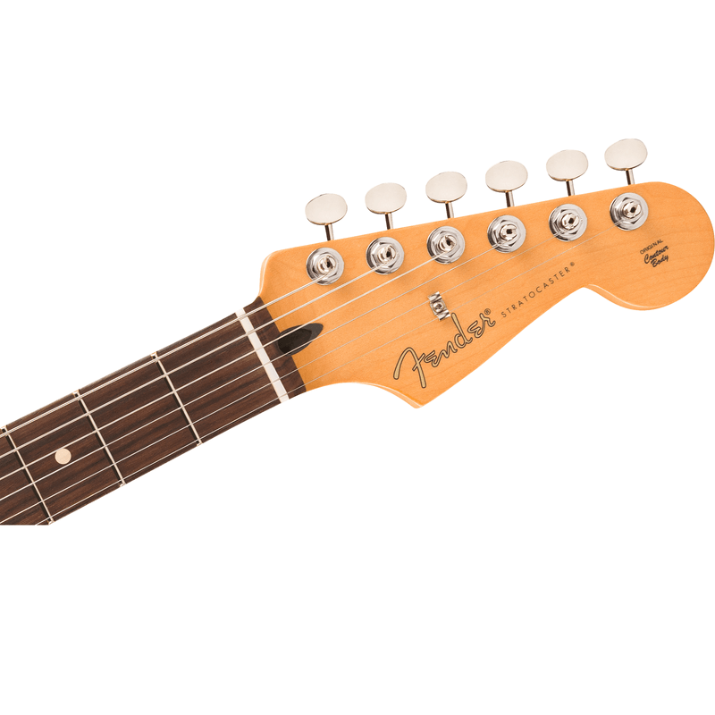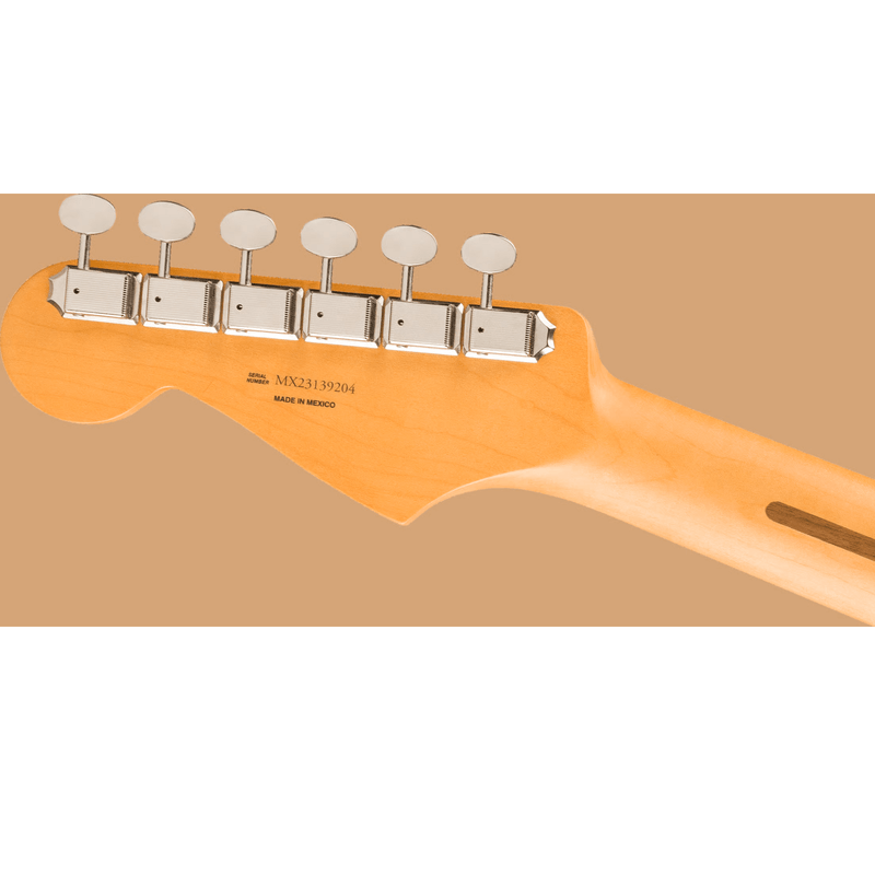 Esta Stratocaster apresenta uma ponte tremolo sincronizada de dois pontos com saddles de aço curvado para um timbre Stratocaster definitivo, com ação de tremolo superior para o vibrato mais expressivo e os bends mais ousados.