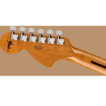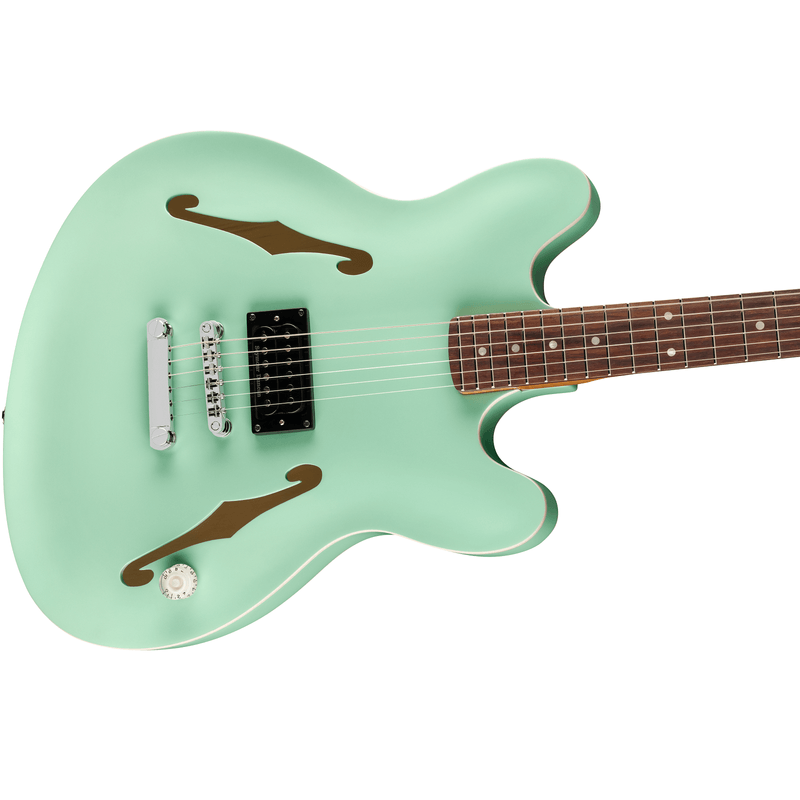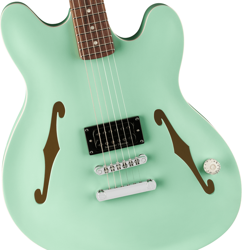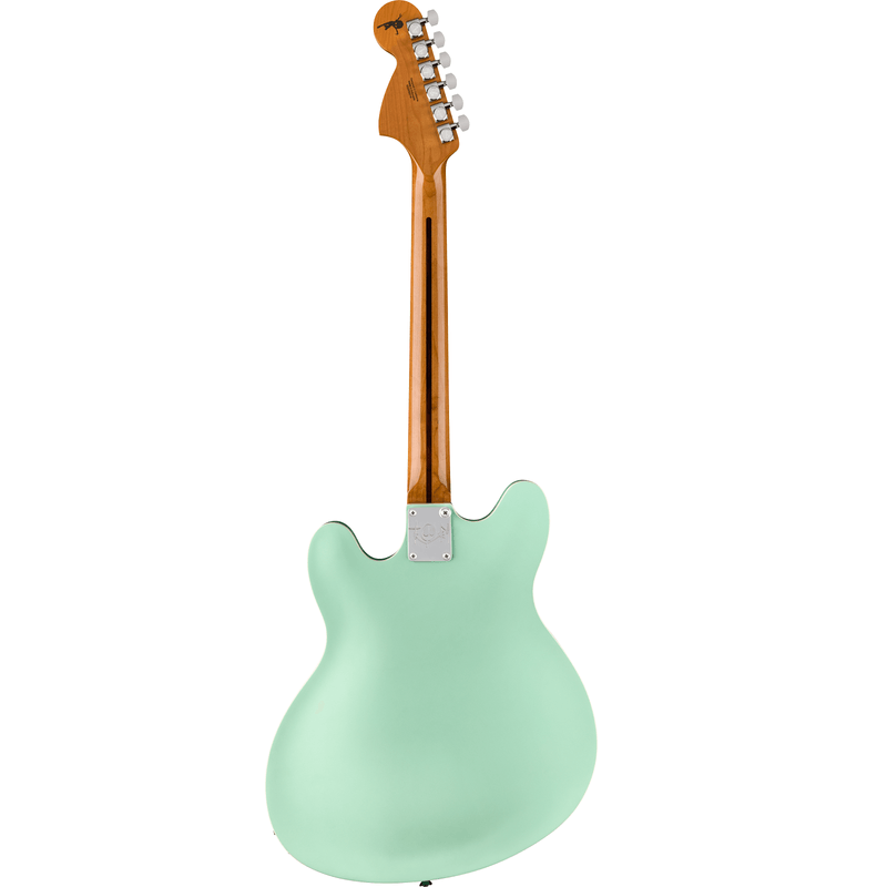 Projetada com um corpo semi-acústico assimétrico, a Tom DeLonge Starcaster ostenta um captador humbucker Seymour Duncan® SH-5 Duncan Custom™ para um timbre turbinado, perfeito para acordes de potência encorpados e riffs pesados. Mas não se trata apenas de potência — o sistema de controle simplificado, composto por um único volume master combinado com um circuito treble bleed, preserva os agudos naturais da guitarra, garantindo timbres limpos e brilhantes e sons cristalinos próximos à saturação. O confortável braço moderno em "C" apresenta trastes médios jumbo em uma escala de jacarandá com raio de 12" para uma sensação moderna com tocabilidade superior. Outros destaques incluem tarraxas Fender com trava para estabilidade de afinação sólida como uma rocha e ponte totalmente ajustável com stop tailpiece para um visual clássico, ajuste superior e estabilidade de afinação aprimorada. A arte original assinada por DeLonge está presente na parte de trás do headstock e na placa do braço feita sob medida.