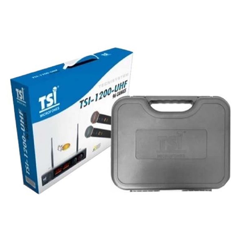 O sistema de microfone TSI1200 UHF é composto por um receptor 1200UHF com Display Digital e utiliza o microfone TSI X1UHF com 2x48 canais de operação Este sistema trabalha na frequência de UHF com 96 canais de operação com o processo exclusivo GHOSTLESS que significa: ``sem fantasmas´´, baseado em estudos profundos de teoria sobre recepção de sinais eletromagnéticos em alta frequência e antena de alta performance.