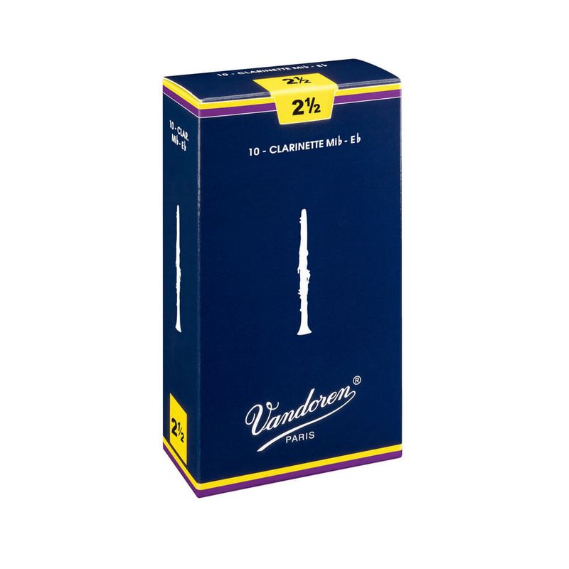 Palheta Tradicional para Clarinete Mib com 10 Vandoren Excelente resposta em todos os registros permitindo um ataque macio em notas mais altas. Sua flexibilidade permite a execução de grandes intervalos. - Caixa com 10 unidades -Material: Cana -Espessura da Ponta: 0,09 mm -Espessura do Talão: 2,8 mm
