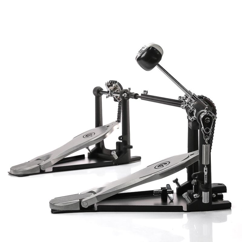 O pedal de bumbo duplo Avenger com corrente dupla 6711S é versátil e projetado para potência e controle. Construído em estrutura fundida com placa estabilizadora de aço super sólida e batedores dupla-face.