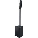 Sistema de coluna de três vias com um subwoofer de 12 polegadas, dois drivers de médio alcance de 4 polegadas e um driver de compressão de 1 polegada