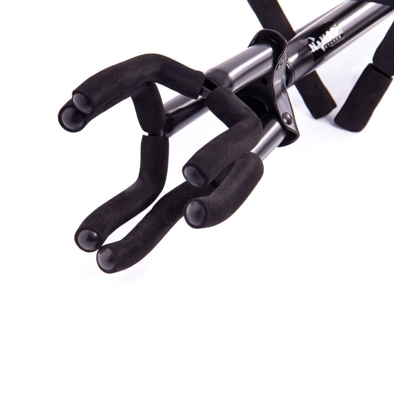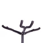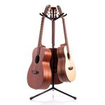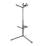 Suporte triplo, de excelente qualidade, com espumas para proteção dos instrumentos. Adequado para violão, guitarra e baixo. Perfeita para estúdios e palcos. Base tripla dobrável. Construída em metal. Encosto para o corpo do instrumento.