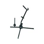 Para uso tanto com sax alto ou tenor, este suporte compacto também oferece pino em madeira parafusável para flauta ou clarinete. O ângulo do eixo central equilibra o instrumento apropriadamente, enquanto os apoios superiores e inferiores o seguram firmemente no lugar. A borracha aveludada macia não vai danificará o acabamento de seu saxofone. - Aplicação: Sax alto / tenor, clarinete / flauta - Abertura da base: 45,7cm - Número de instrumentos: 2 - Cor: Preta