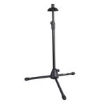 Este suporte de qualidade profissional utiliza um sistema de sino com mola para acomodar com segurança seu instrumento. A trava intermediária de ajuste de altura ajusta-se para posição em pé ou sentado. A base em tripé dobrá-se para facilidade no transporte, enquanto sua abertura extra larga proporciona estabilidade superior. - Ajuste de altura: 29-47 (73-119 cm) - Abertura da base: 22 (55 cm) - Número de instrumentos: 1 - Cor: Preta fosca
