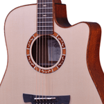 O STG D-16CE Pro+ apresenta um tampo de spruce maciço, uma madeira conhecida por sua excelente capacidade de projeção e clareza sonora.
