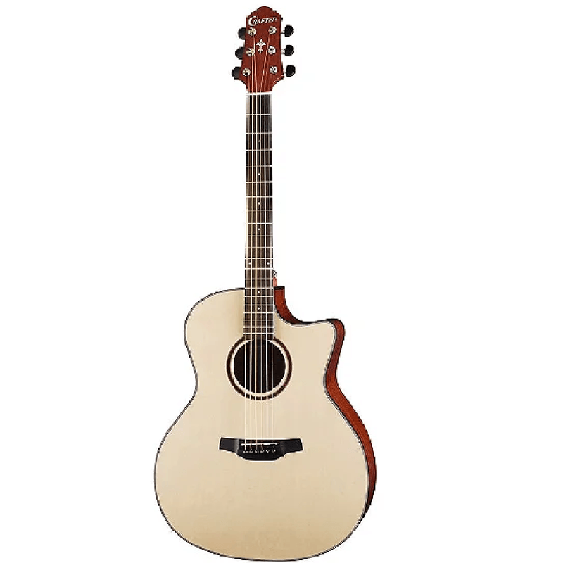 O Crafter HG-250 CE/N é um violão Grand Auditorium com Cutaway, com fundo em Mahogany, laterais em Mahogany, tampo em Engelmann Spruce com binding na cor preta, braço em Mahogany e escala em Rosewood. Conta com o Preamp Crafter CR-T NV com controles de Presence, Treble, Middle, Bass, Phase e afinador integrado com tela LCD