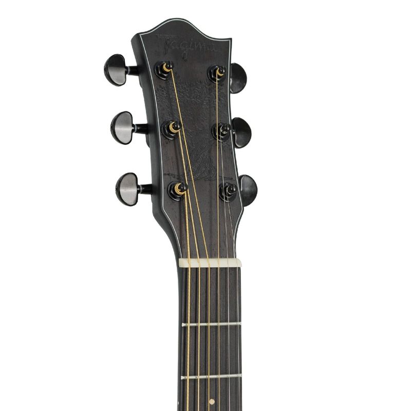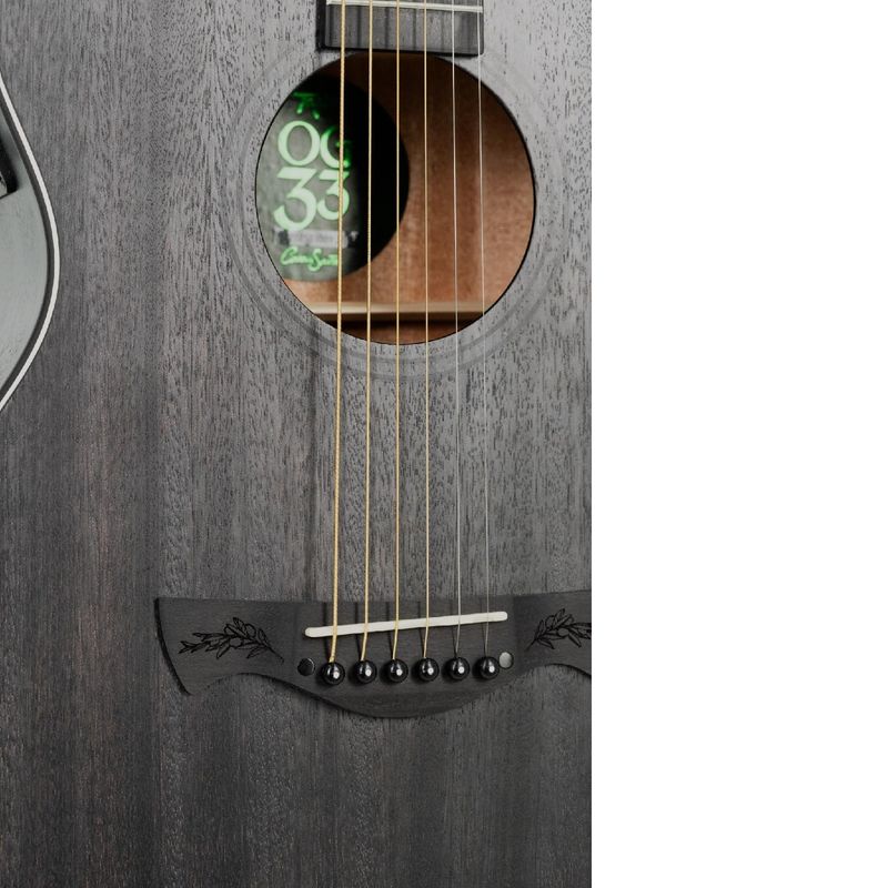 O Tagima OG-33 BK tem captação Piezo e equalizador Tagima TEQ-8, este modelo está pronto para palcos e estúdios, entregando um som limpo e ajustável. O cavalete em Purpleheart e o nut de 43mm garantem precisão na afinação e conforto na pegada. Um violão folk não-cutaway que combina tradição, elegância e tecnologia, perfeito para quem procura um instrumento versátil, robusto e com timbre marcante!